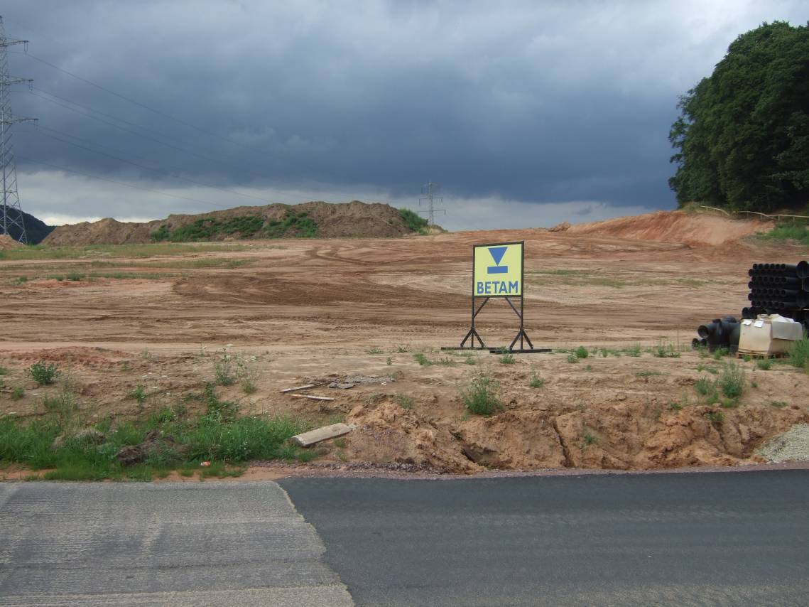 Derzeit nur ein einsames Firmenschild auf der Großbaustelle