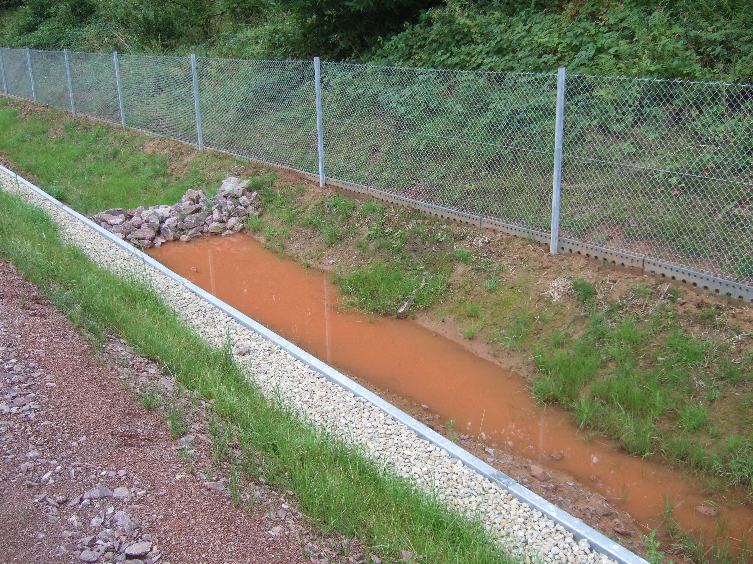 Retensionsgräben für Oberflächenentwässerung und Wildzaun mit Unterkriechbarrieren
