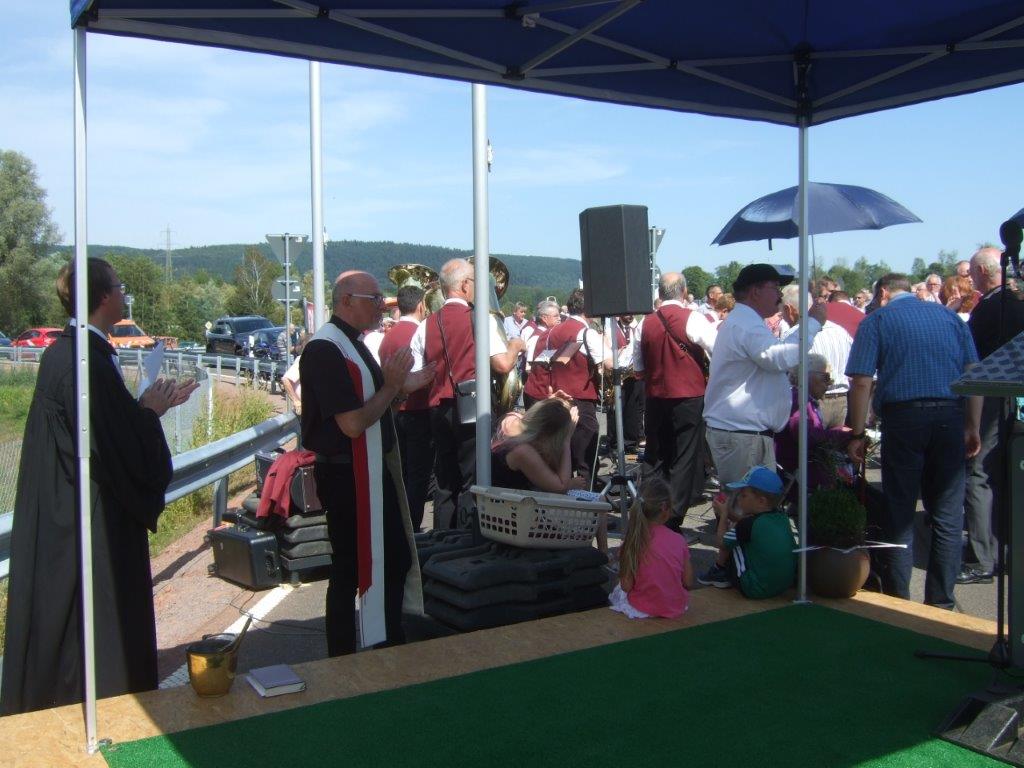 Pastor Bernhard Bollig, Pfarrer der Pfarreiengemeinschaft Saar-Mosel und Pfarrer Christoph Urban, Evangelische Kirchengemeinde Konz, gaben ihren Segen zur neuen Straße