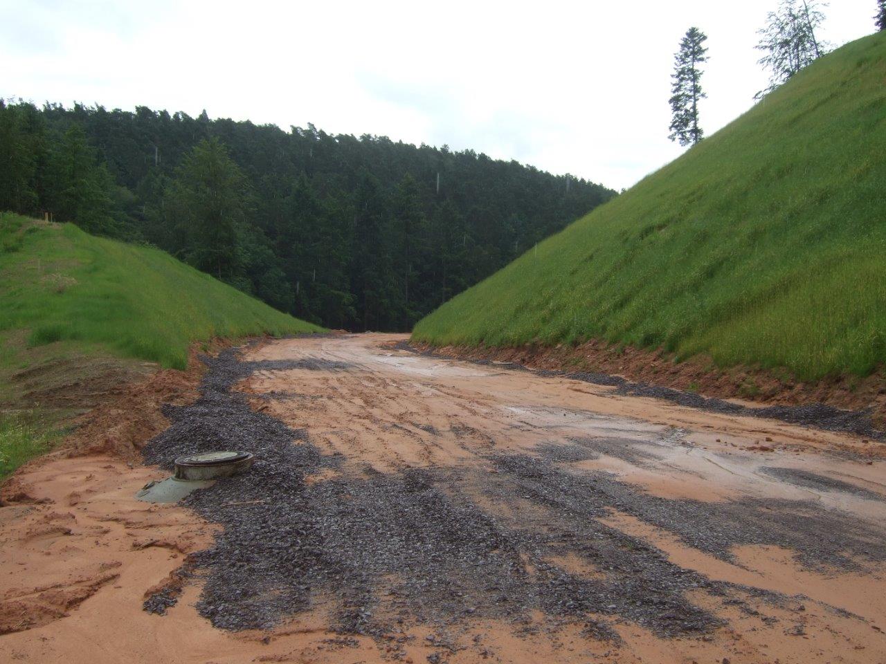 An den Flanken des Bergeinschnittes vor Tawern wächst schon frisches Gras